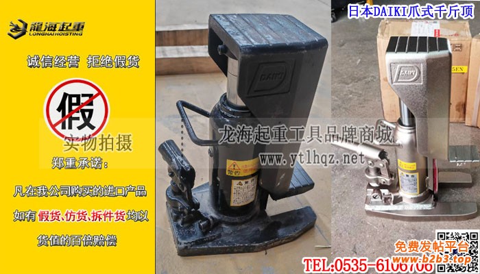 【产品质保】日本DAIKI爪式千斤顶为日本原装进口产品保质一年,我公司郑重承诺:厂家货源,凡在我司购买该品牌产品如有仿货、假货、拆件货均以货值百倍赔偿!